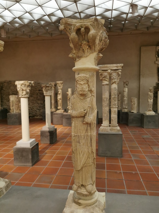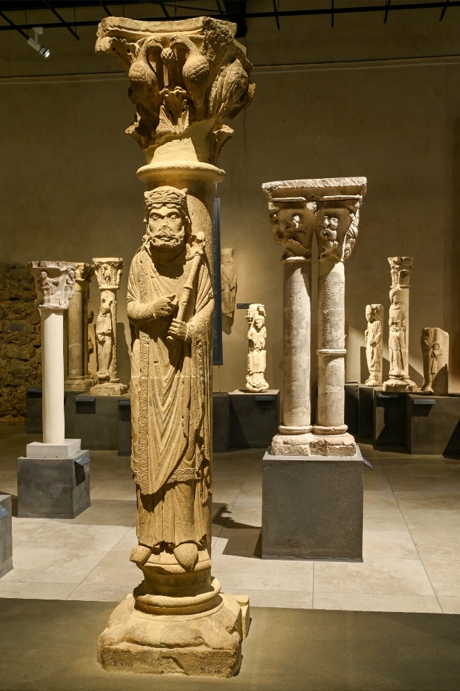 Fig. 7 Vue intérieure du musée du Cloître de Notre-Dame-en-Vaux avec le pilier quintuple des Noces de Cana à droite, juin 2025, @ Christophe Manquillet.