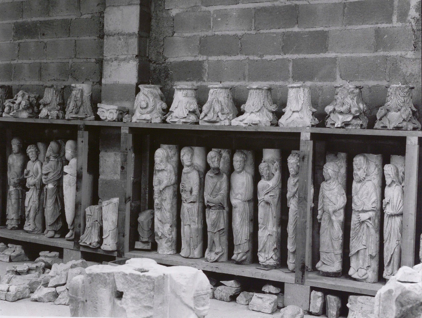 Le 27 mai 1988, André Chastel écrit à Léon Pressouyre (1935-2009) au sujet d’« une des plus belles découvertes » 1, celles des vestiges du cloître de Notre-Dame-en-Vaux réalisées entre mai 1963 et novembre 1976. Ces fouilles ont permis la mise au jour de 1112 fragments qui s’ajoutaient d’une part aux 115 classés Monument historique par arrêté du 15 janvier 1962 et d’autre part à certains des 27 transférés au musée du Louvre en 1893 puis en 1933. Dans son courrier, Chastel loue l’article de son confrère paru dans Gesta en 19702 sur la sculpture champenoise et qualifie l’ouvrage de Sylvia Pressouyre (1935-1987) Images d’un cloître disparu d’« utile et sympathique, mais comme une étude de chantier »3. Citer ces mots en ouverture peut paraître provocateur car les qualificatifs gênent assurément le lecteur qui reconnait en cet ouvrage son importance historique autant qu’il admire les éditions de Joël Cuénot, leur format de beaux livres ainsi que les photographies en noir et blanc qui magnifient les œuvres sculptées tel qu’il le réitère un an plus tard avec celui consacré à Notre-Dame-de-Paris 4. Parallèlement, ils pourraient heurter aussi, notamment les anciens collègues et élèves de Léon et de Sylvia Pressouyre, qui connaissent l’engagement du couple ainsi que les circonstances personnelles justifiant l’absence d’une synthèse globale sur le sujet. Le propos de Chastel est à replacer dans une écriture plus générale de l’histoire de l’art dans laquelle la découverte des vestiges du cloître de Châlons constituait un corpus tellement exceptionnel, autant par sa qualité que par la quantité de vestiges, qu’il apparaissait d’emblée comme un jalon laissant présager un renouvellement de la connaissance de la sculpture du premier âge gothique. La publication tant attendue n’a certes jamais vu le jour mais les Pressouyre furent la cheville ouvrière de la conception du musée, ouvert au public en 1978.